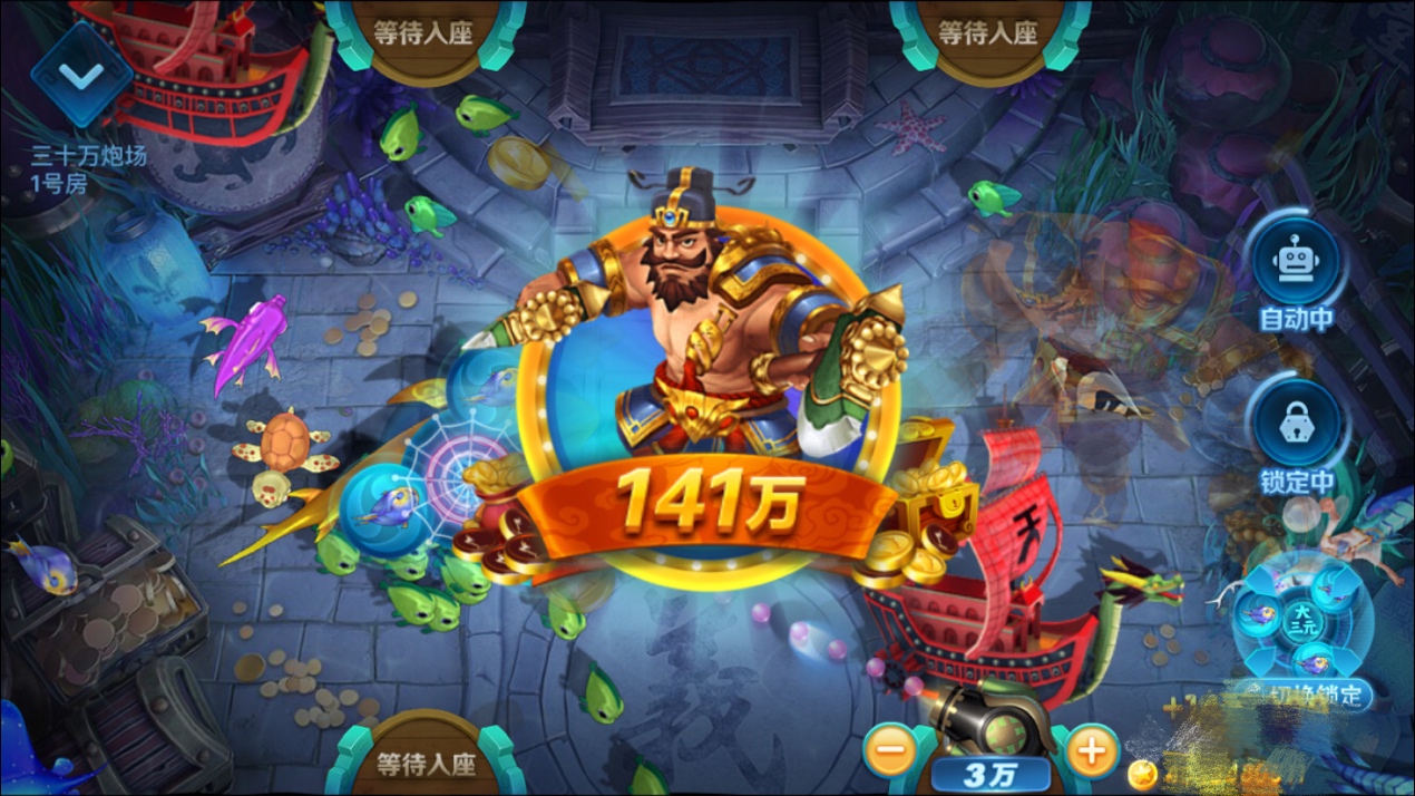 在游 戏开始的时候,我们要合理利用资源,先去捕捉一些小鱼累积,建议炮弹倍数用5级。选对目标也很重要,我们可以选择大鱼附近有小鱼的,这样子我们可以在捕捉大鱼的时侯也会攻击到一些小鱼,即便打不中大鱼也可以收获小鱼,这样也能节约我们的游 戏成本。一旦击中多条大鱼,火力足够的时候能一石二鸟。
